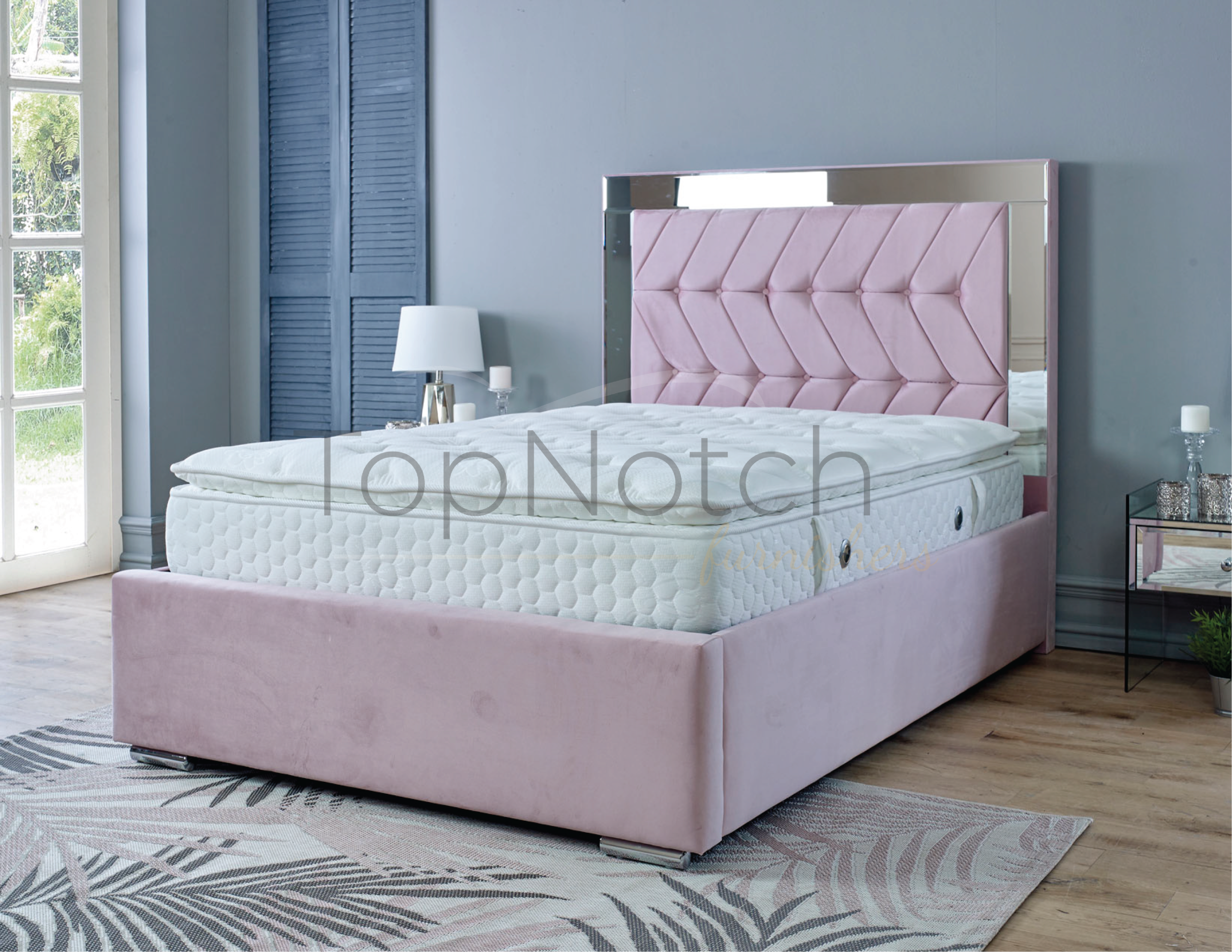 Customize your Horizon bed with mirror headboard by choosing a fabric option from crush velvet, plush velvet or Naples velvet. You can also add optional footstool to get more functionality In your bed.